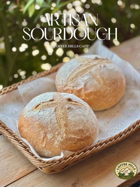 Artisan Sourdough ขนมปังซาวโดว์แท้โฮมเมด สไตล์อาร์ติซาน หมักด้วยยีสต์ธรรมชาติอย่างช้าๆ เพื่อให้ได้รสชาติเปรี้ยวอ่อนๆ หอมเฉพาะตัว เปลือกด้านนอกอบจนกรอบหอม ด้านในเนื้อขนมปังนุ่ม หนึบ ทานเปล่าๆก็อร่อย หร